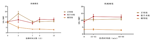 CCI 模型的机械痛产生早,且具有炎性和神经病理性疼痛等特征,同时还有热痛敏。因此,CCI 模型最适用于模拟人外周神经损伤( 肿瘤抑制、重金属中毒、缺氧或代谢异 常) 所致的神经病理性疼痛的症状和行为,同时对探讨神经病理性疼痛的炎性反应、机械痛早期的症状和机制及其新型治疗方法的疗效和可能作用机制有着良好适用。