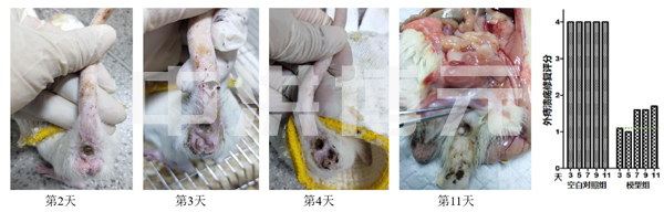 痔疮是一种常见多发病, 是肛门直肠底部及肛门黏膜静脉丛发生曲张而形成一个或多个柔软静脉团的慢性疾病, 包括内痔、外痔以及混合痔。现痔疮模型多为病理性模型, 且多为外痔动物模型。乙酸诱导大鼠(家兔,小鼠)肛门溃疡模型是常用的外痔模型,醋酸在常温下是一种具有强烈刺激性酸味的无色液体,可以使组织肿胀水肿,产生溃疡。利用醋酸的这一特性,在动物肛周局部应用可使动物肛周产生肿胀和溃疡。
