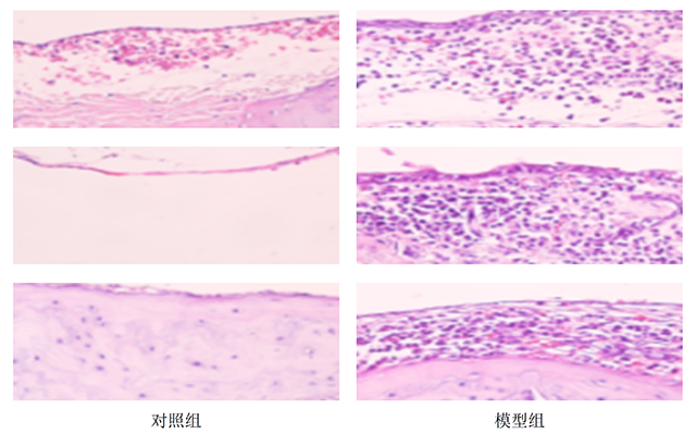 造模方法:体式显微镜下每侧听泡内注射LPS,48 h后成功制备分泌性中耳炎模型。