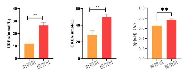 评价指标:体重变化及存活率、生化检测及肾体比、病理染色