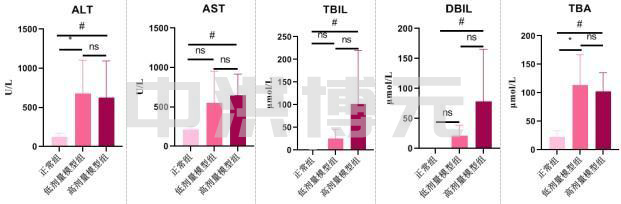 2. 血清ALT、AST、TBIL、DBIL、TBA水平